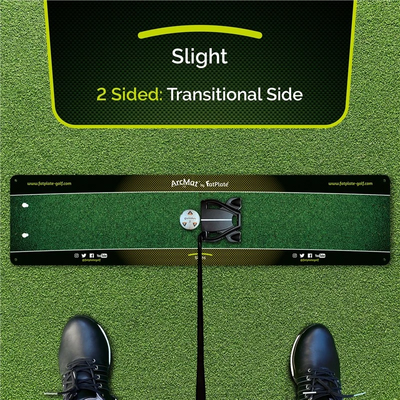 By removing the sweetspot arc, face angle lines & square face setup line, ArcMat’s transitional side then becomes the perfect bridge between technical training & the natural appearance of the green.
