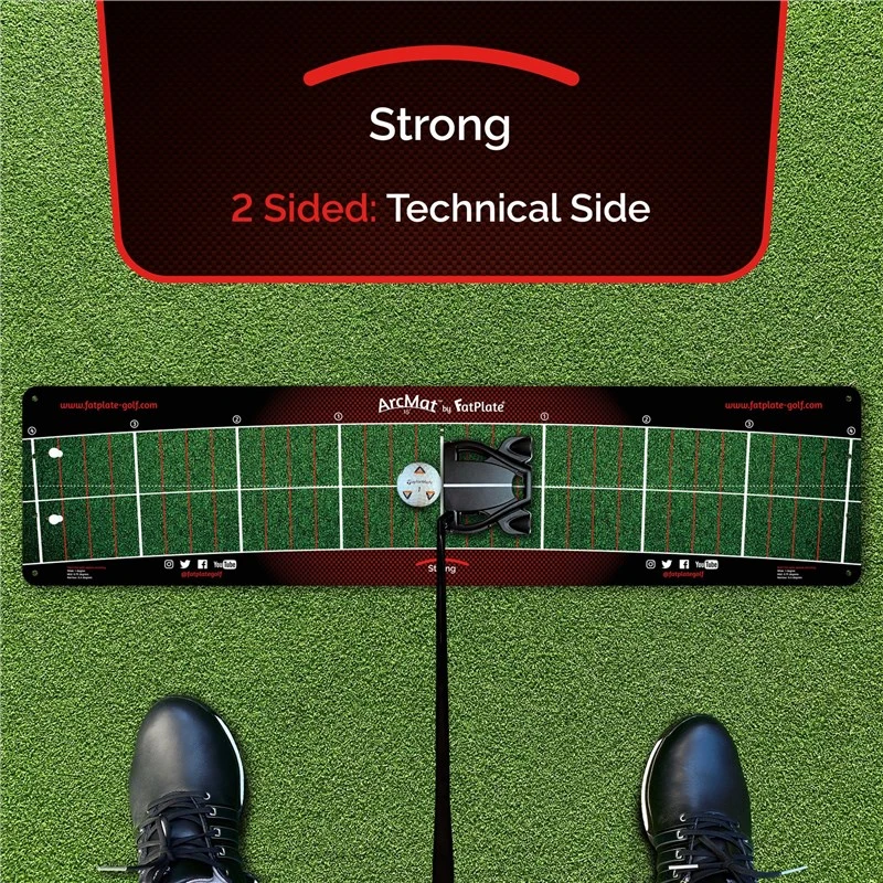 ArcMat’s sweetspot arc, stroke track, numbered face angle lines & setup alignment give complete guidance throughout the stroke whilst the start line gates offer feedback after impact.