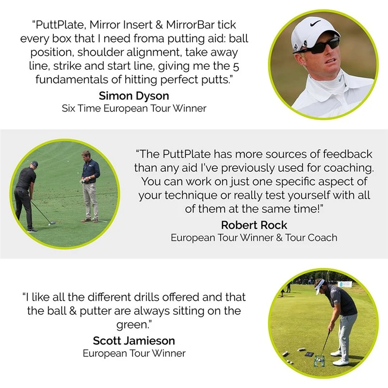 PuttPlate, Mirror Insert & MirrorBar help with all aspects of head, body & club alignment during setup and also helps to monitor and reduce any excessive or unwanted movement during the putting stroke, every single time.