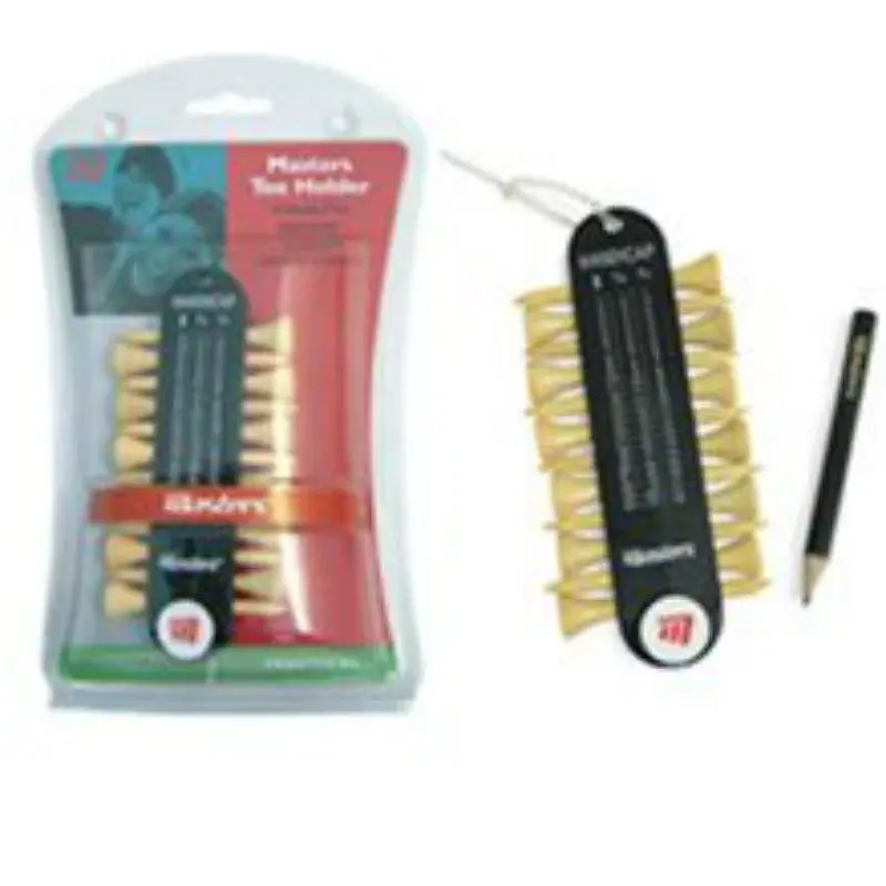 It is a neat, tidy and easy way to hold your tees. This holder includes 12 tees, a pencil, a ball marker, a handicap calculator and can be hung on your golf bag.