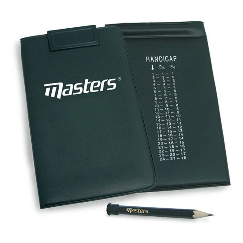 A protective case for your score card, keeping it dry and providing a firm writing surface. It features a score card clip and a pencil.