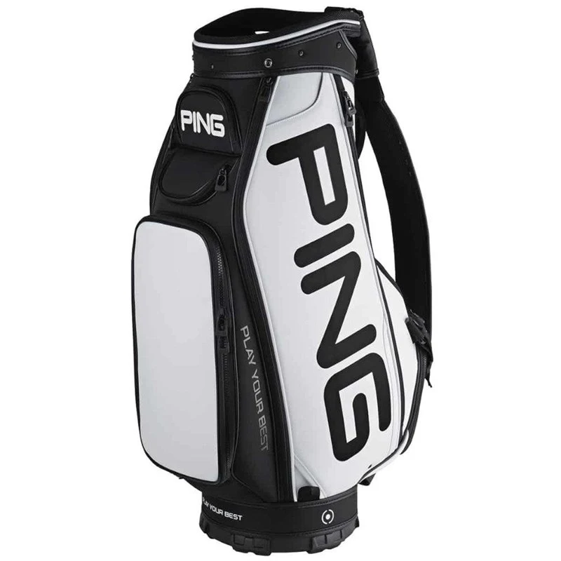 The PING Tour Staff bag has been carried all over the world by caddies of PING pros and carted by golfers of all abilities who rely on it’s intelligent efficiency and quality-built, robust design. Clean lines and bold graphics convey the PING brand while nine large pockets, a six-way soft cover top and thickly cushioned shoulder strap place the emphasis on ease of use.