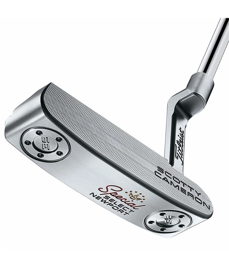 Evolving the curvy, compact setup of this classic blade design, the Special Select Newport is crafted from solid milled 303 stainless steel without an insert and with new performance balanced tungsten sole weighting for a larger sweet spot and increased stability. The revamped plumbing neck allows for better alignment and setup with freer visual access to the flatter, narrower topline, while a new, cascading concave second tier knocks down reflection and provides a “melt-into-the-ground” appearance at address. The Select line’s iconic three red dot theme continues with elegant new Tour-inspired “cherry rings” reminiscent of legendary tournament-winning models.