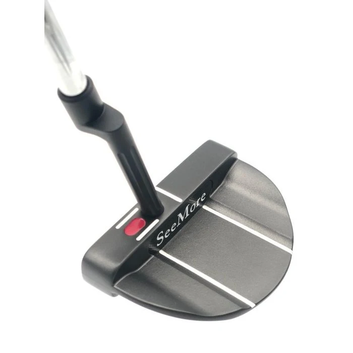 SeeMore’s new PVD Classic Series Si5 RST Hosel mallet has broad appeal to all golfers who love a larger mallet design and prefer to have their hands slightly forward at address. The Si5 RST Hosel features a sleek and simple near center shaft design with enhanced perimeter weighting for a confident look at address, great stability, and strong visual feedback. A lighter weight milled aluminum insert also enhances feel and balance. The Si5 RST Hosel is extremely accurate and forgiving. The new Si5 RST Hosel Mallet features SeeMore’s Revolutionary new RST Hosel Plumber Neck Design. SeeMore’s new RifleScope Technology (RST) Plumber Neck Hosel, simplified to “RST Hosel,” is a 100% USA Machine Milled fluted barrel hosel that brings a unique approach to the classic offset plumber neck design. It enables golfers who want their hands slightly forward, and love the precise look of a classic plumber neck hosel, to take advantage of SeeMore’s patented and proven RST alignment system. By hiding the red dot, and lining up the white lines, using the lower portion of the new RST Hosel, golfers now have an exciting new option within the SeeMore lineup. The RST Hosel enters the head on a single plane angle, at 70 degrees, and the design offers an entry point of connection closer to the sweet spot than a standard plumber neck. This leads to improved feel and balance, and a more fundamentally sound stroke, as well as offering the precision alignment benefits of RifleScope Technology. Alignment benefits of RifleScope Technology (RST). Offset Plumber Neck Hosel. Ten degrees toe hang. Design and functionality are completely unique to SeeMore, with design making it very easy to properly release the putter head. Cast 303 stainless steel featuring milled aluminum face. New hand polished charcoal PVD smoke finish for a very rich look. All Putter Models Have SeeMore’s Patented RifleScope Technology (RST) Alignment System, For A True Reference Point For Perfect Alignment And Set Up On Every Putt. SeeMore was the winning putter brand of the 2015 OPEN Championship at St. Andrews (Zach Johnson), in one of the greatest clutch putting performances in OPEN History. SeeMore putters have won 3 MAJOR Championships, also including the 2007 Masters (Zach Johnson) and the 1999 US Open (Payne Stewart).