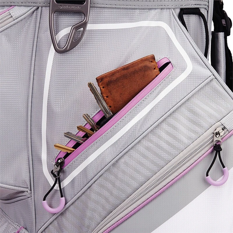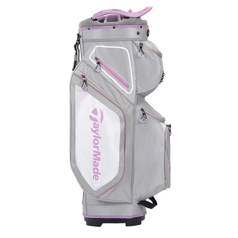 The TaylorMade Pro Cart 8.0 bag replaces the 6.0 cart for 2020. This bag has a 10Inch top with a 14 way divider to seperate your clubs. Three grab handles allow for an easy carry to and from the golf course. A Lightweight stay rod construction and a key lock base will allow this bag to firmily stay on your trolley while on uneven ground.