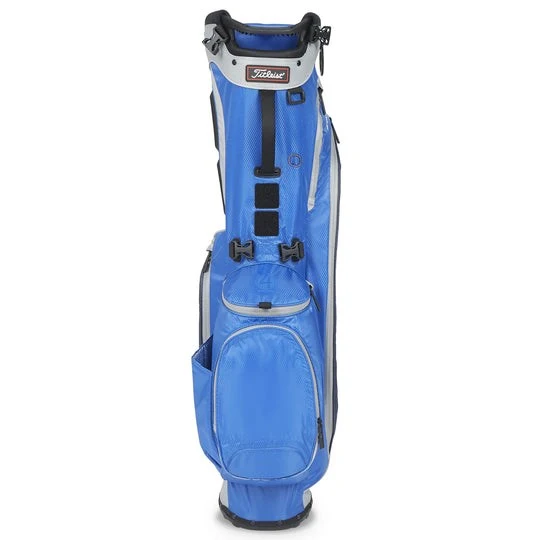 Titleist Players 4 StaDry Stand Bag. The new Titleist Players 4+ StaDry Stand Bag – A premium and functional stand bag. Features include a 4 way top with integrated handles and advanced hinged bottom for stability and durability. This bag includes a new, premium, double strap for cushioning and lasting comfort. This 6 pocket design is constructed with StaDry technology, has seam sealed zippers and includes a rain hood. Constructed in durable materials and finished with Titleist branding. Weight – 1.7 KG’s.